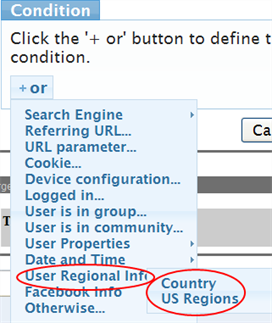 User Regional Info data uses GeoIP information. See Also: Creating Conditions with the Targeted Content Widget