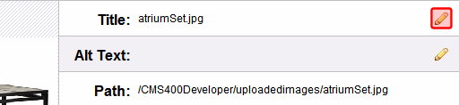 Note: You cannot change an existing image. If you need to do this, delete the image you do not want, then add the correct one. You can only edit the Title and Alt Text.
