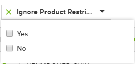 Some filter options support Boolean, or binary values; for example, the Customer section's Ignore Product Restrictions option.