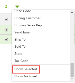 - Scroll to the bottom of the options list, then choose Show Selected to view only the selected records.