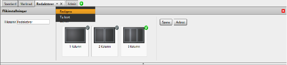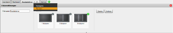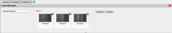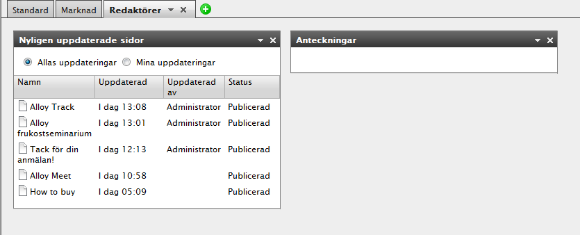 Du använder flikar för att ordna OnlineCenter-informationen. Du kan skapa egna flikar samt välja och lägga till gadgetar. Du kan exempelvis ha en flik för marknadsgruppen och en för produktredaktörer, med specifika gadgetar för respektive grupp. Du kan anpassa layouten för varje tabb genom att ange hur många kolumner du vill använda för att visa information. OnlineCenter-översikten innehåller alltid minst en standardflik.